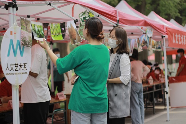 工程系主任姜学东带领系各教研室主任设立了专业答疑岗,介绍专业前景和就业方向,分享优秀校友事迹,将新生专业教育工作做在前,引导新生提前树立学习目标指引方向。人文艺术系在报到现场设置了优秀作品展,将历届学生拍摄的摄影作品展示给新生。