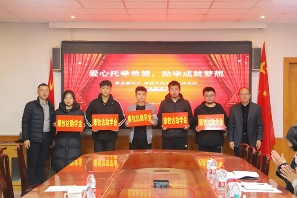 11月6日上午,青岛康牧达生物科技有限公司助学金颁发仪式在青岛农业大学海都学院莱阳校区227会议室举行。校长刘家尧、青岛康牧达生物科技有限公司总经理杨志刚、学校党政办公室、学生工作处、生物工程学院党政负责人出席仪式,生物工程学院师生及受助学生参加活动。