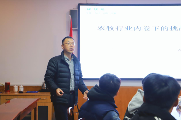 仪式结束后,杨志刚总经理为在场师生作了题为“农牧行业内卷下的挑战与机遇”的专题报告,与师生畅谈交流,进一步深化了校企合作,为学生拓宽了行业视野,增强了实践认知。