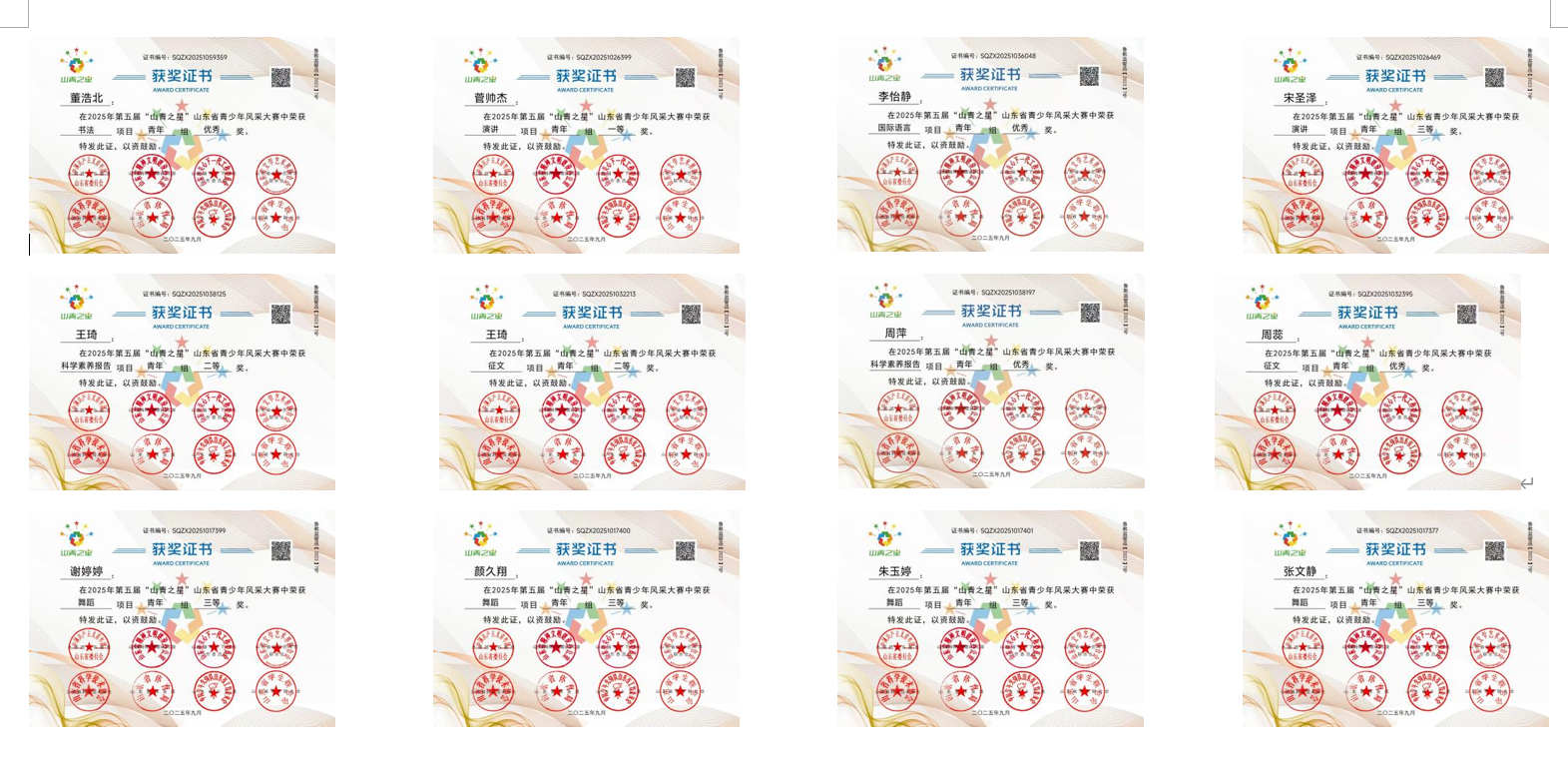 近日,由团省委主办,山东省青少年宫协会、山东省青少年宫承办的2025年第五届“山青之星”山东省青少年风采大赛获奖结果正式公布。我校成功斩获一等奖1项、二等奖2项、三等奖2项、优秀奖8项,共计13项。