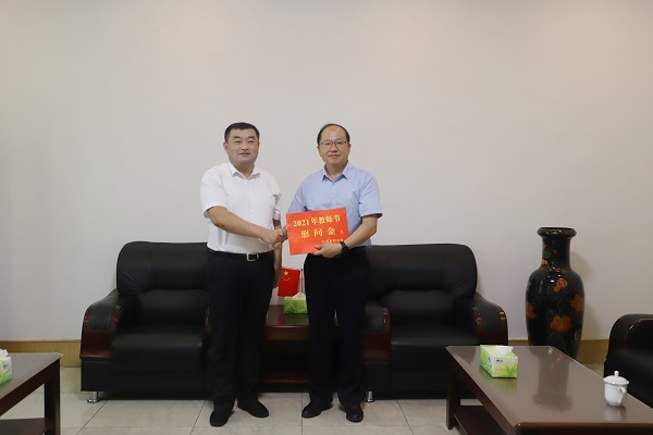 谢晓昀代表莱阳市委、市政府向学院赠送了教师节慰问金,向全院教职工致以节日的祝福。