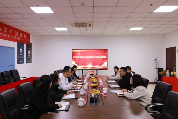 为对接汽车产业发展需求,深化校企协同育人,1月5日上午,青岛农业大学海都学院副校长李守林带队赴青岛比亚迪汽车有限公司走访调研、洽谈合作,机电与建筑工程学院副院长蒋大园、信息与工程学院副院长王朝娜,机械教研室、电气教研室教师代表陪同调研。青岛比亚迪汽车有限公司总经理王保灿、副厂长于飞龙、人事科长李燕华对青岛农业大学海都学院一行表示热烈欢迎。