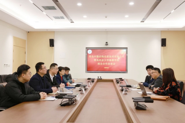 2025年12月30日上午,青岛农业大学海都学院与青岛中服在线信息技术有限公司校企合作洽谈会在图书馆第一会议室顺利召开。学校副校长李守林出席会议,信息工程学院党总支副书记张继红主持会议,企业总经理李峰等一行3人及学院教师代表共同参会。双方围绕深化校企合作、推进产教融合、搭建协同育人平台深入交流,促进教育链、人才链与产业链、创新链有机衔接,携手共育高素质应用型人才。