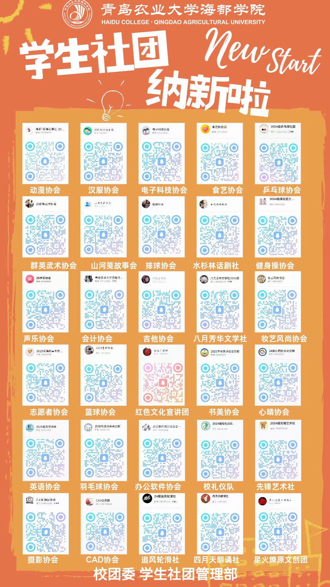 秋光正好,青岛农业大学海都学院2025学年学生社团纳新于11月15号在三号楼前正式开始。