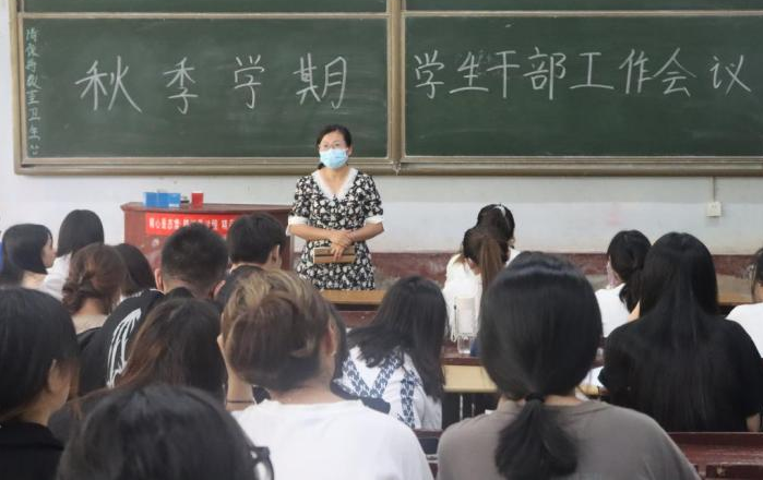 付文珍对与会全体学生骨干提出几点期望和要求:一要加强理论学习,提高政治素质;二要加强学习锻炼,提高工作能力;三要改进工作作风,提高服务意识;四要以身作则,起到表率作用;五要担当作为,在接下来的班级工作和迎新等工作中勇挑重担,多做贡献。最后希望同学们尽快调整好状态投入新学期的工作、学习和生活中,并祝同学们新学期学习进步、工作顺利。李英杰对开学初学生工作作出具体部署和安排,要求各班级认真落实好开学初各项工作,准确掌握班级同学返校情况,第一时间召开“开学第一课”主题班会,加强思想教育和安全教育;严格落实疫情防控工作要求,做好核酸检测疫情排查等工作;学生干部要增强责任意识,密切关注班级同学的思想动态和心理状态。辅导员赵旭光、李雅萌、宋一凡分别针对宿舍管理、团日活动、暑期社会实践、2022级迎新工作等进行了安排。