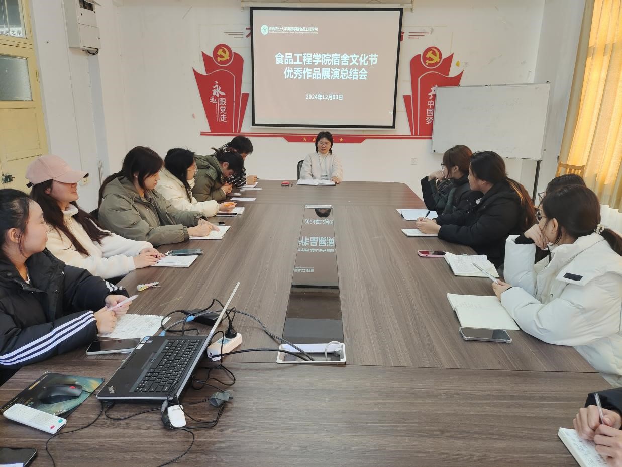 12月3日中午,食品工程学院宿舍文化节优秀作品展演总结会于3号楼201会议室召开,本次会议由食品工程学院党总支副书记张蕾主持,各部门负责人参会。