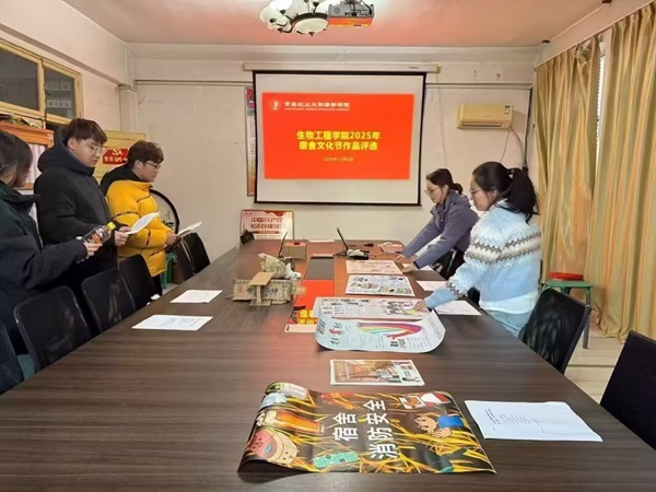 12月4日下午,生物工程学院在3号楼301会议室开展2025年宿舍文化节作品评选活动。学院团总支书记、学工办主任李琦,全体辅导员老师及部分学生干部代表组成评选小组,共同参与本次评选工作。