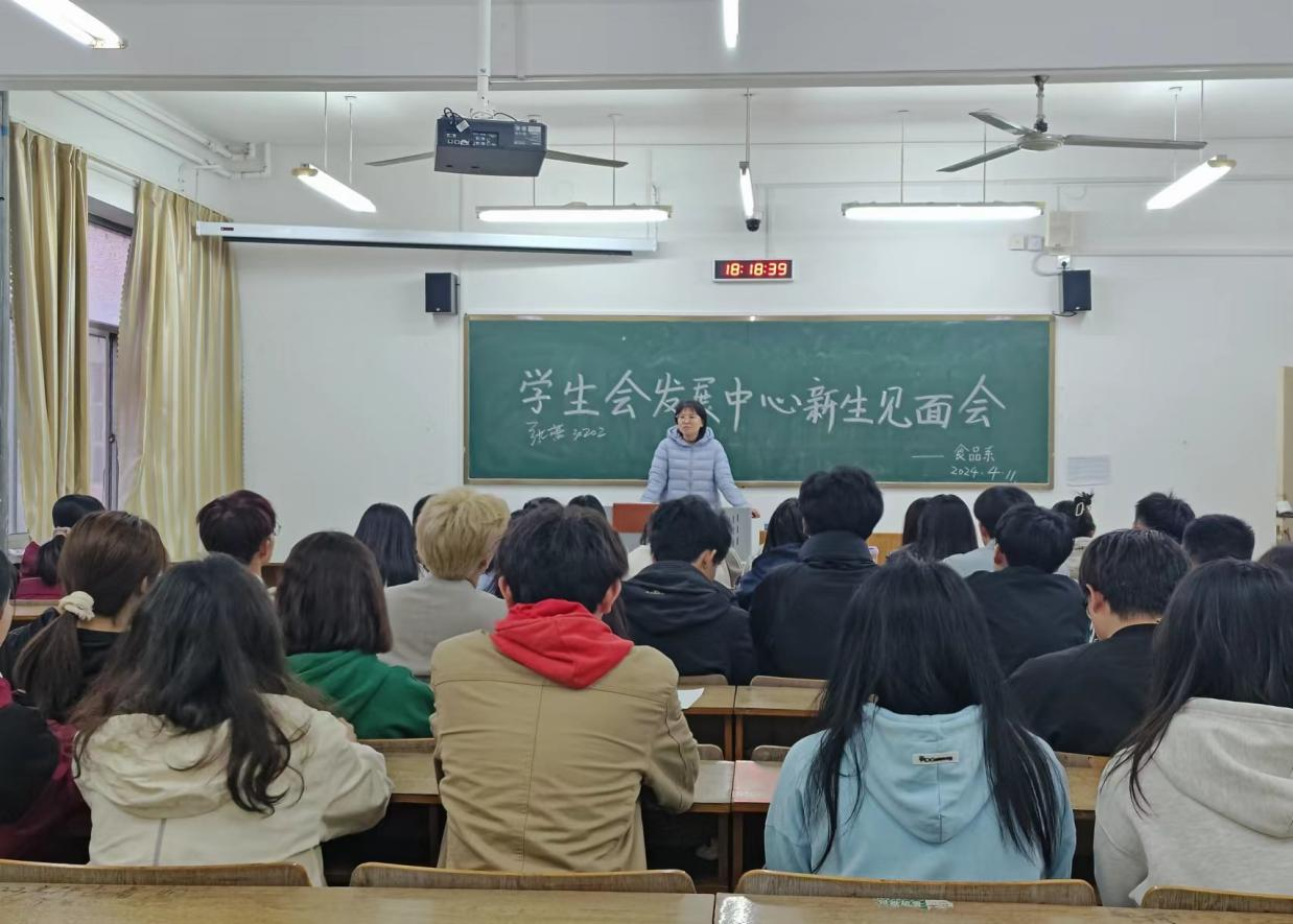 4月11日晚上,食品系在六号楼110教室召开食品系学生会、学生发展中心新成员见面会。本次会议由系党总支副书记张蕾、团总支书记周婧以及辅导员徐敏、王杰青,学生会、发展中心全体成员共同参与。