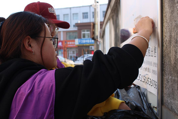 活动当天,志愿者们身穿紫色马甲,手拿小铲子、垃圾袋等清洁工具,深入鸿达文化小区、小河口小区的各个区域进行卫生清洁活动。对小区绿化带、杂物、枯枝落叶、卫生死角进行打扫,对墙体小广告进行深度清理。志愿者们充分发扬不怕苦、不怕脏、不怕累的奉献精神,不但改善居民居住环境,还向周边居民群众进行宣传,以实际行动引导他们也积极参与到环境整治工作当中。