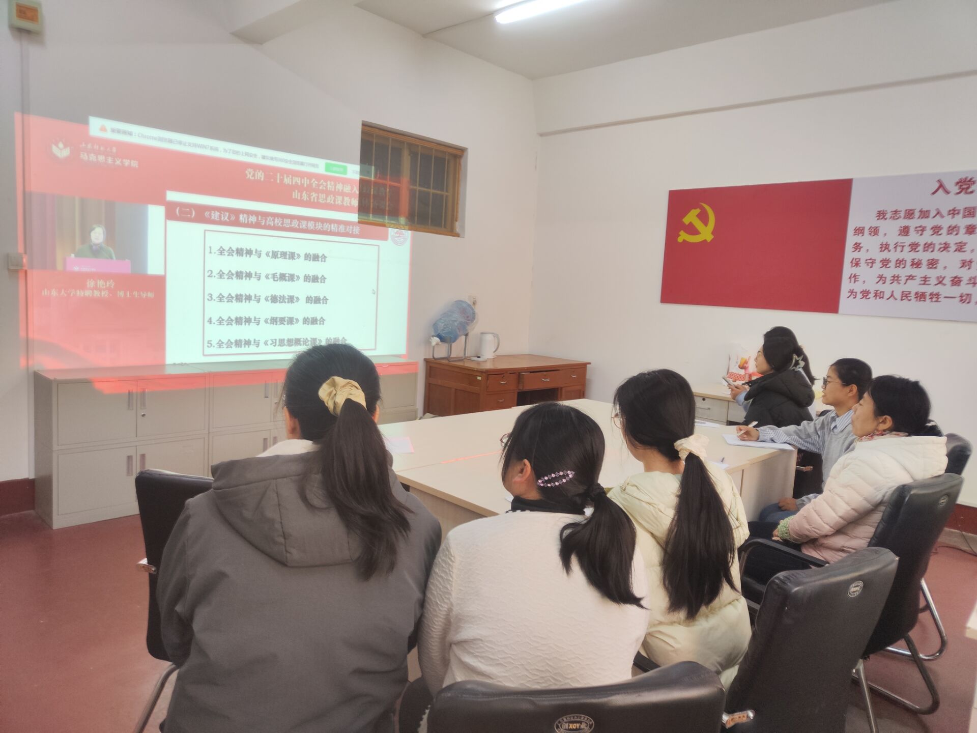 为学习贯彻党的二十届四中全会精神,深入推动党的创新理论“三进”工作,11月14日,山东省教育厅在济南举办党的二十届四中全会精神融入思政课教学集体备课会。学院高度重视此次学习机会,选派思政课教师刘信玉、姜莎莎赴现场参会,同时组织两校区其他思政课教师通过线上方式同步参与,实现全员覆盖、同频共振。