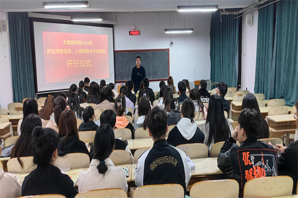为进一步加强新生预备党员和入党积极分子接续培养力度,提高先进分子学习党的基本理论和贯彻党的路线方针政策的自觉性,11月4日晚,大数据学院在五号楼401教室举行2022年新生预备党员、入党积极分子培训班开班仪式。大数据学院党总支纪检委员、学生党支部宣传委员王慧鑫主持开班仪式。