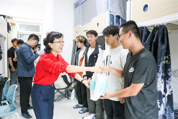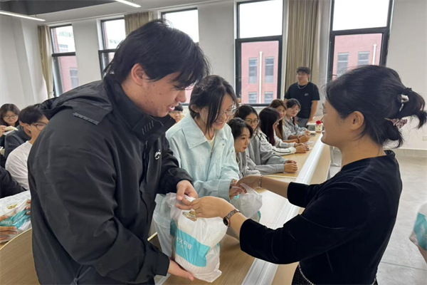 走进教室,张继红、王朝娜与辅导员们亲手为同学们递上暖心月饼,询问大家的学习近况与节日安排,叮嘱大家兼顾学业与生活,在校园中度过充实温馨的中秋。接过承载关怀的月饼,同学们脸上洋溢着笑容,现场满是欢声笑语。