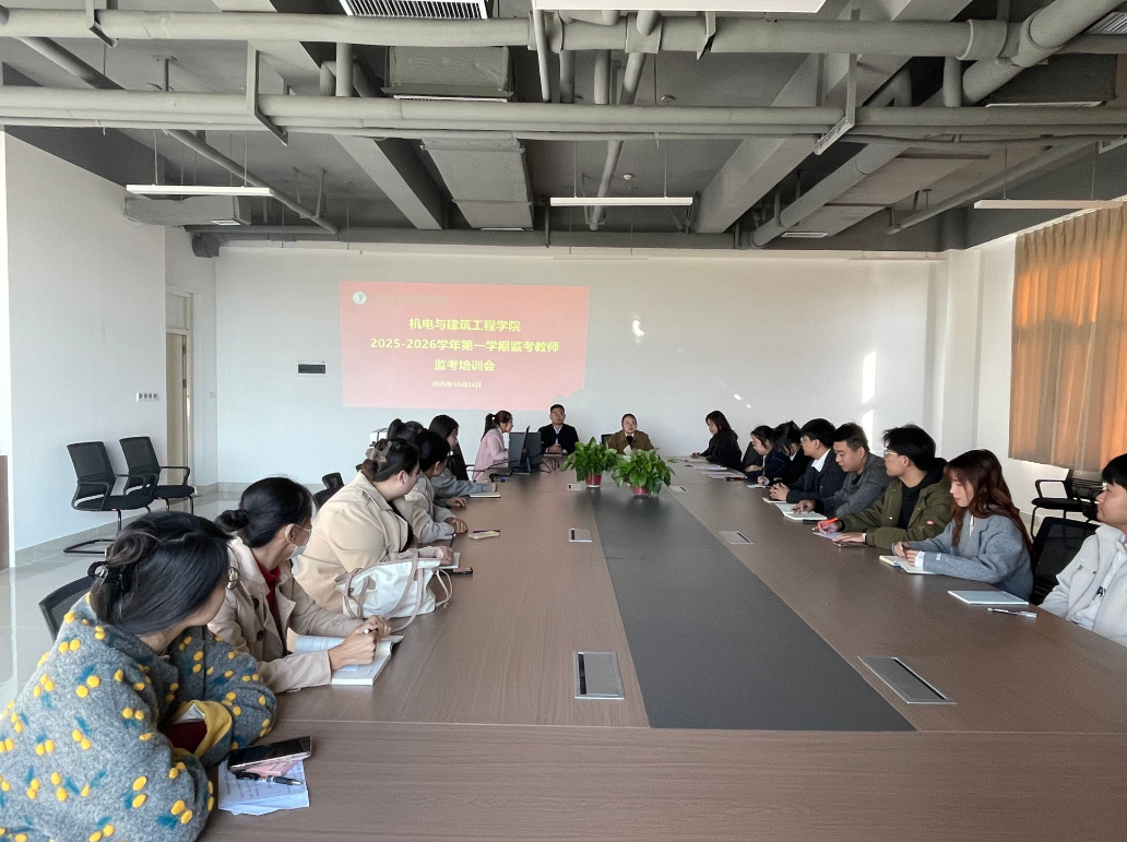 为进一步严肃考风考纪,提高监考教师专业素养,明确监考职责,确保2025-2026学年第一学期考试工作顺利进行,机电与建筑工程学院于10月24日上午在3号楼C301会议室组织召开了结课考试监考培训会议,学院党总支副书记赵洪校,副院长蒋大园出席,全体监考教师参加了培训。