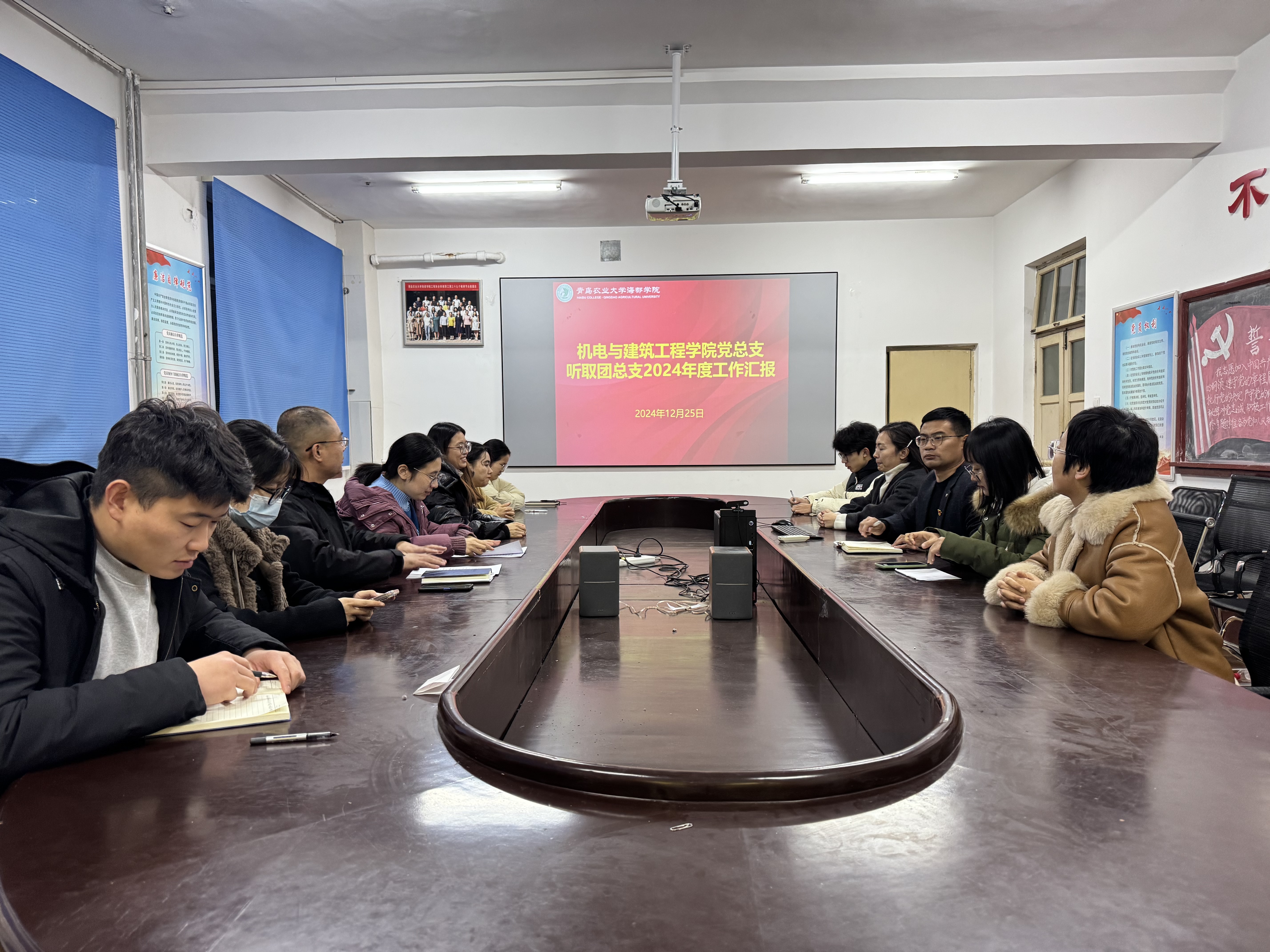 12月25日,机电与建筑工程学院党总支在五号楼三楼会议室召开党总支听取团总支2024年度工作汇报。学院党总支委员赵洪校、贾永敏、赵紫桦,专职组织员郝萃萃,全体辅导员参会,党总支副书记赵洪校主持会议。