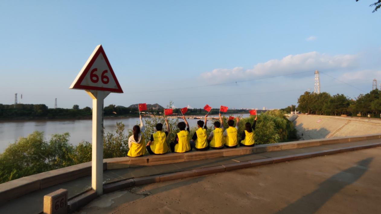 实践团队还在黄河岸边开展了红色主题活动,全体成员齐声高唱《黄河大合唱》经典选段《保卫黄河》。激昂的旋律回荡在母亲河畔,不仅唤起在场群众对革命历史的铭记,更让“自强不息、顽强拼搏”的红色精神在新时代焕发光彩,引得沿途市民纷纷驻足聆听,不少人自发加入合唱,现场氛围热烈而庄重。