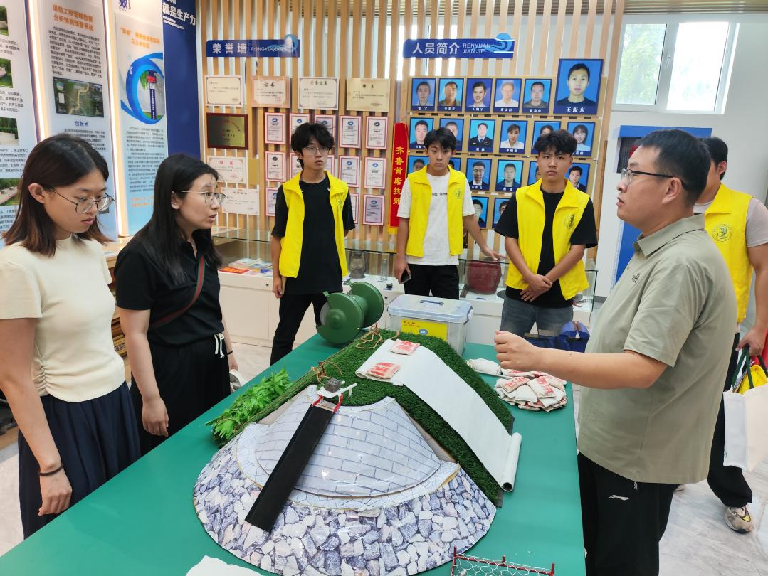 在实践首站聚焦黄河纪念馆,师生代表首先驻足于由九十九种不同字体“河”字构成的文化墙前,在笔墨流转间感受黄河文化的厚重底蕴。随后,在讲解员的专业引导下,团队系统梳理了黄河治理的千年脉络——从古代的“疏川导滞”到近代的防洪减灾探索,再到新时代“生态优先、系统治理”的治河理念,全方位了解不同历史时期治水措施的迭代升级,以及黄河流域在新旧动能转换、生态保护修复等领域的生动实践成果。