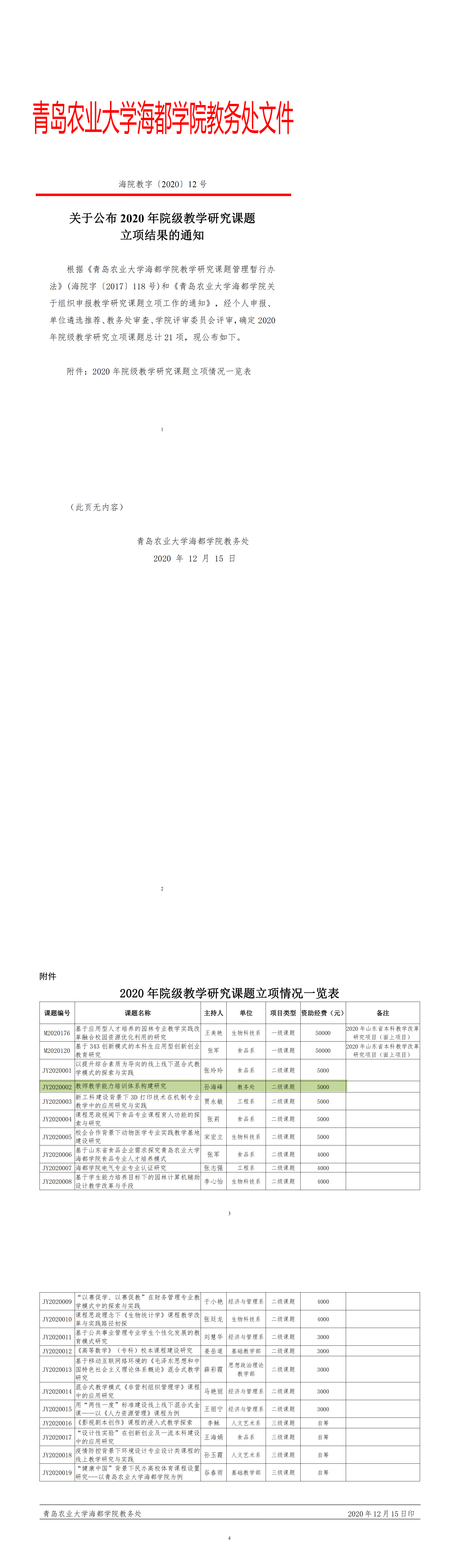 1.24 关于公布2020年院级教学研究课题立项结果的通知-海院教字[2020]12号(孙海峰).pdf