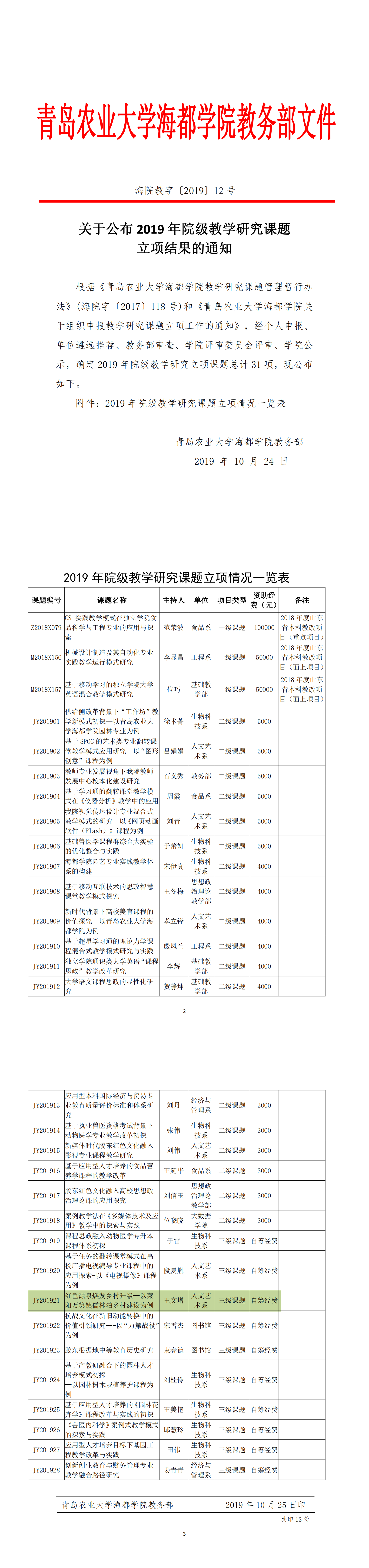 1.62 关于公布 2019 年院级教学研究课题 立项结果的通知-海院教字【2019】12号(王文增).pdf