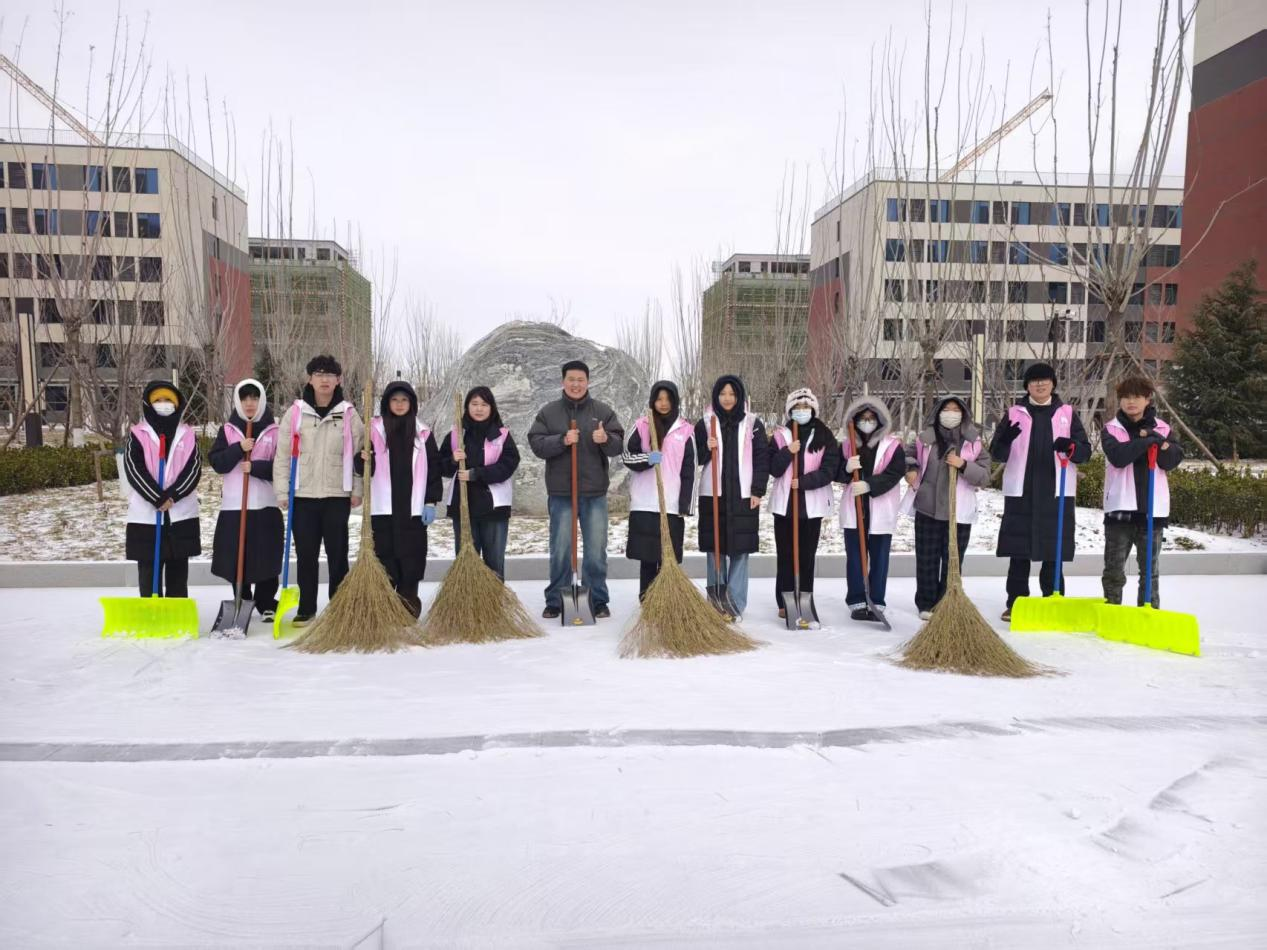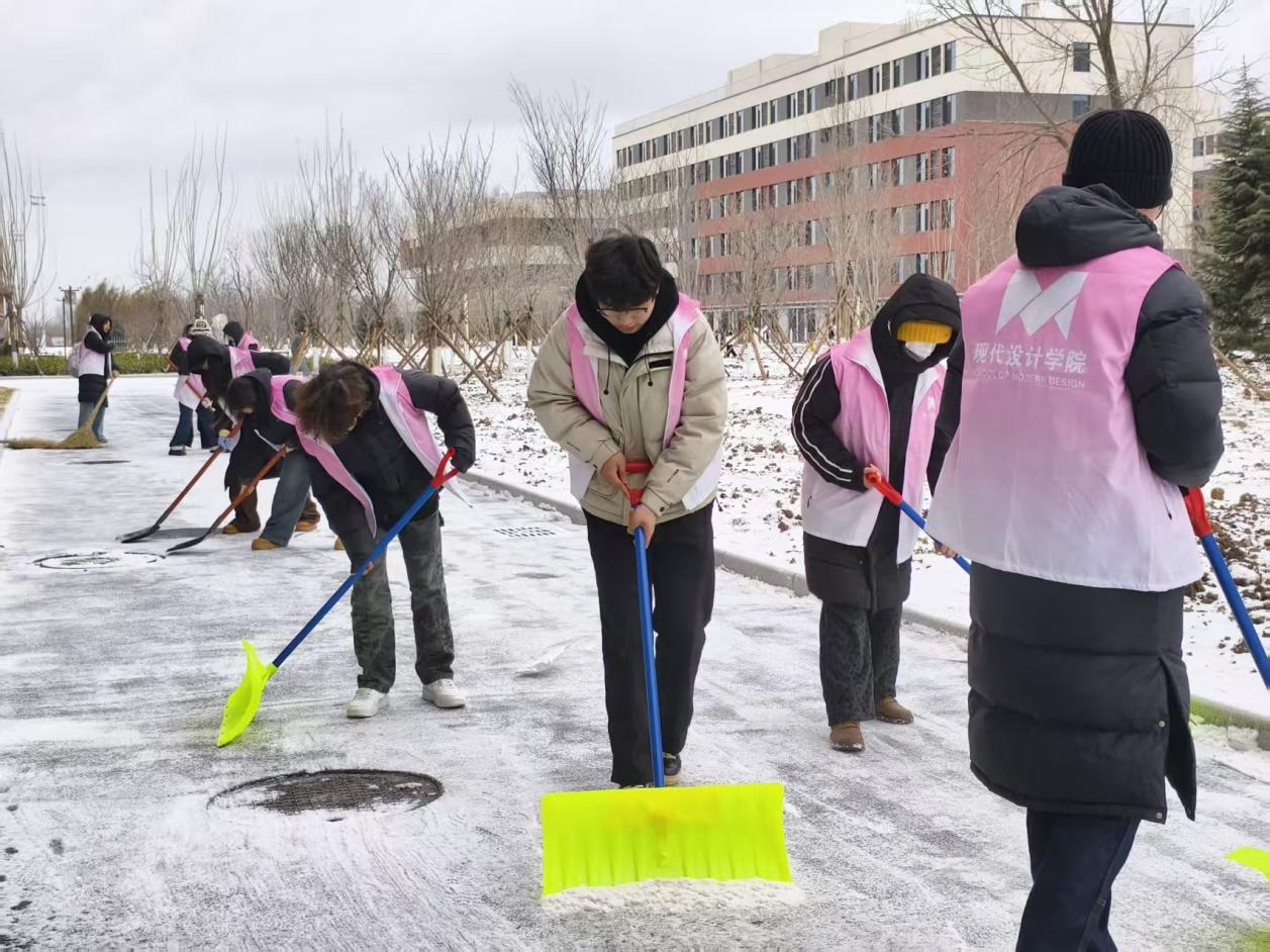 1月19日,大寒将至,一场瑞雪为校园披上银装。为保障同学们安全出行,传递学校关怀,现代设计学院辅导员宋一凡带领学生党员、学生会及学生发展中心全体成员,开展了“我为群众办实事”系列活动之寒冬扫雪送温暖志愿服务活动。