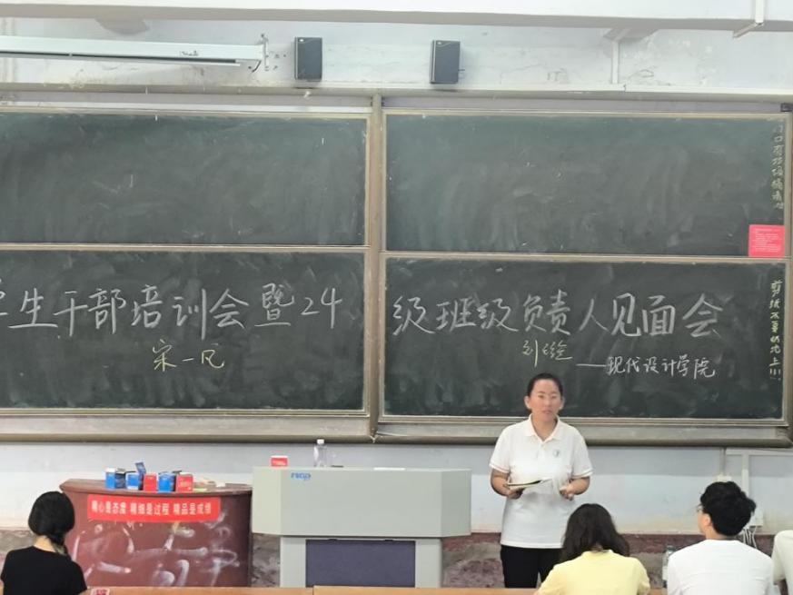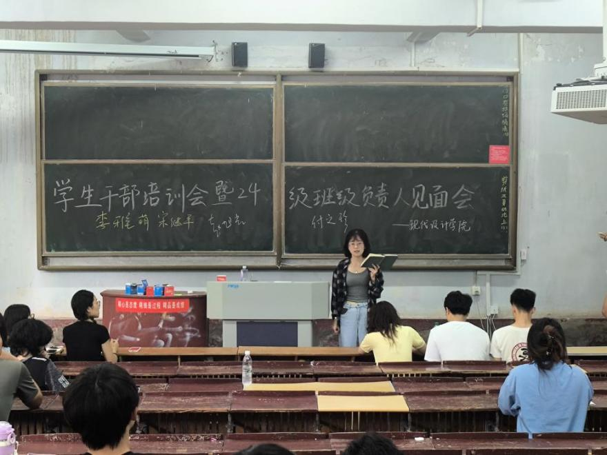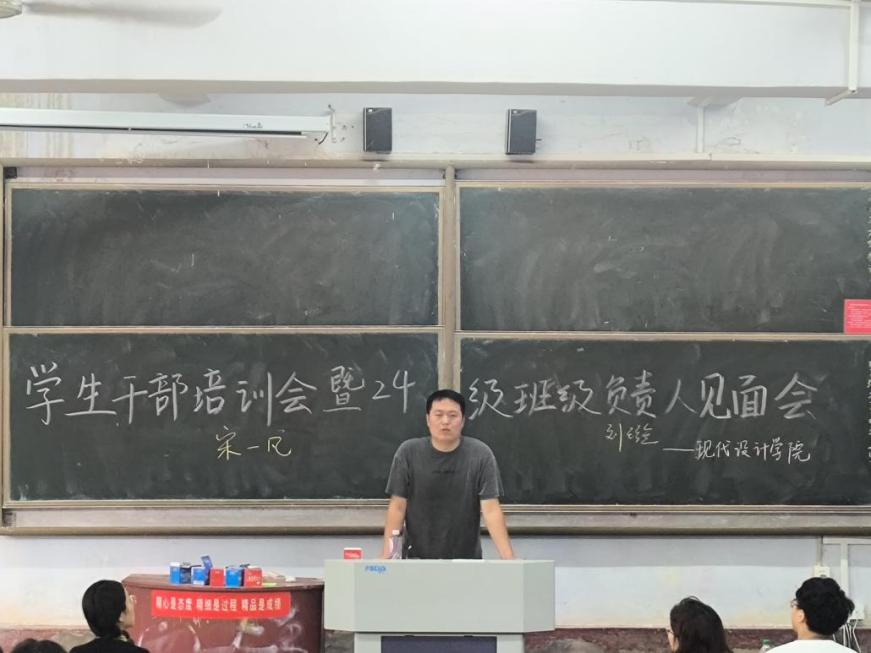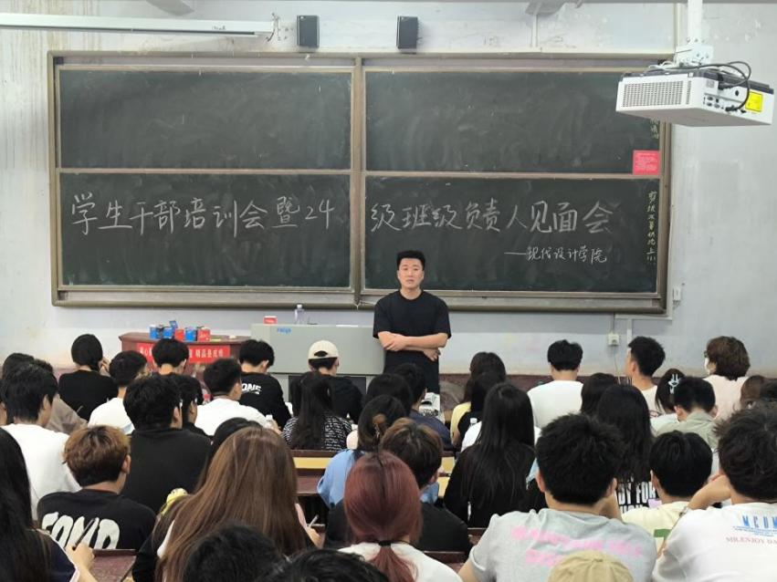 9月20日上午,现代设计学院在二号教学楼114教室召开学生干部培训暨2024级班级负责人见面会。现代设计学院党总支副书记付文珍,学工办主任、团总支书记李英杰,全体辅导员,学生会、学生发展中心全体成员,各班班级班长团支书以及2024级班级负责人参加会议。会议由李英杰主持。
