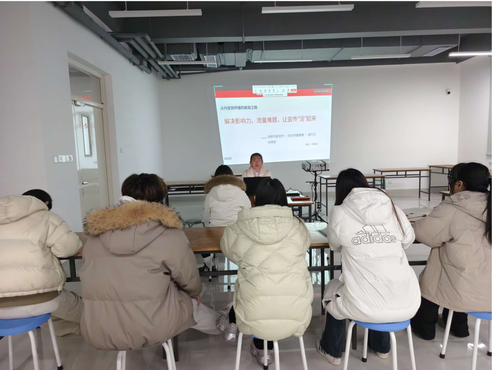 12月30日晚,现代设计学院在5号教学楼A区421教室开展学生记者技能培训会,学工办主任、团总支书记李英杰,数字媒体艺术Z2025级1班刘岚波以及现代设计学院全体学生记者参加,会议由荣鑫主持。