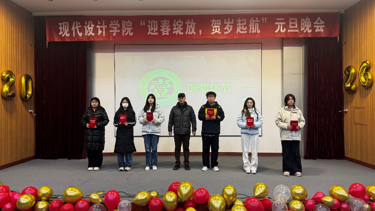 12月29日晚,现代设计学院于2号楼报告厅成功举办2026年“迎春绽放,贺岁起航”元旦晚会。出席活动的领导有学生工作处副处长、团委副书记孙家财,现代设计学院院长赵少俐,办公室主任常珊珊,学工办主任、团总支书记李英杰,辅导员赵旭光、辅导员刘璇,以及2025级全体大一新生。