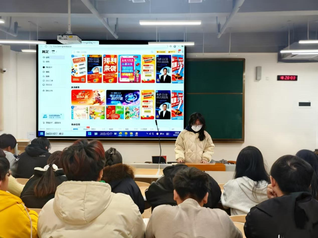 本次培训会邀请到本院宣传部部长、平面设计领域表现突出的刘桂彤同学担任主讲。作为学生讲师,刘桂彤结合自身丰富的实操经验,为在场同学带来了详实细致的讲解。她系统介绍了当前主流设计工具的操作逻辑与核心功能,并现场演示了如何利用模板资源、智能工具及图文编辑功能,高效完成一张主题明确、排版美观的海报设计。讲解中,她不仅分享了大量实用快捷的技巧,还以贴近学生的视角展开解读,让现场同学能更轻松地理解并掌握相关内容。参会同学纷纷表示,来自同龄人的讲解更具亲和力和参考价值,收获颇丰。
