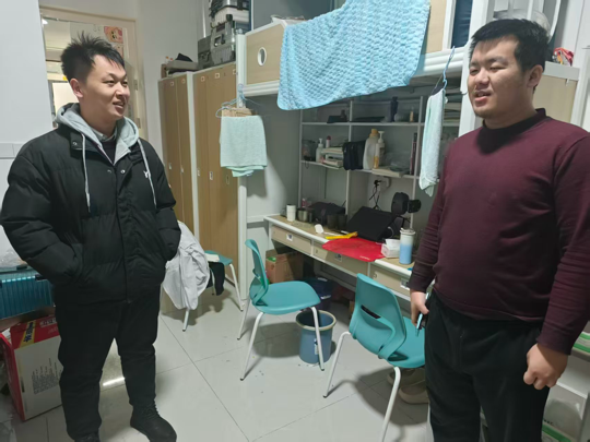 走访过程中,老师们与返校同学亲切交谈,详细询问大家的假期生活、返乡见闻及返校后的学习规划,叮嘱同学们及时调整作息状态,快速适应校园学习生活节奏,同时做好宿舍卫生清洁与安全排查,注意用电安全,妥善保管个人贵重物品。同学们提出的生活便利等相关问题,老师们耐心解答并给出实用建议,并针对学期末关键节点,重点强调了寒假前诚信考试的重要性,提醒同学们严守考试纪律、杜绝作弊行为,以真实成绩检验学习成果;对于同学们提出的课程衔接、备考难点、生活便利等相关问题,老师们耐心解答并给出实用建议,让返校学子感受到学院的贴心关怀。