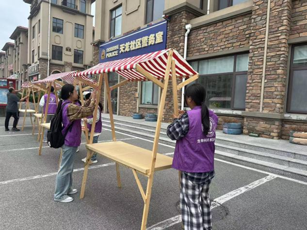 9月27日上午,城厢街道天龙社区国庆游园会启幕前,生物工程学院志愿者团队在辅导员宋玮的带领下提前到场,以“早到、早备、早服务”姿态投入筹备。