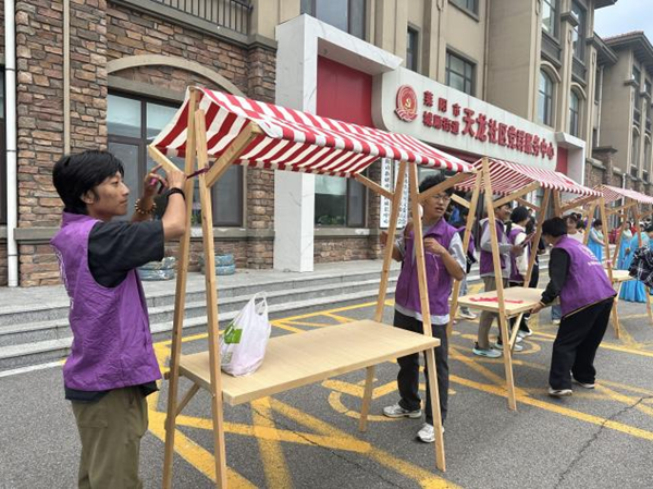 当日清晨,志愿者们身着统一服装,迅速完成分工:一组协助社区搭建活动帐篷、摆放市集商品与便民工具,确保场地布置高效有序;另一组具备基础医学知识的志愿者,提前与义诊医护人员对接,熟悉血压测量、血糖登记等辅助流程,为居民健康服务做好准备;团队负责人还主动梳理引导路线,在老人休息区备好座椅与饮用水,用细节传递关怀。