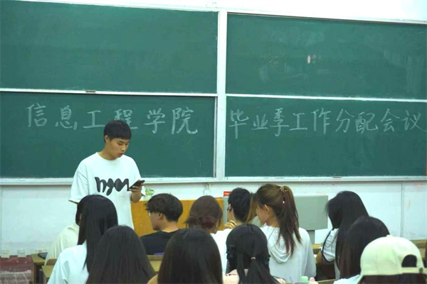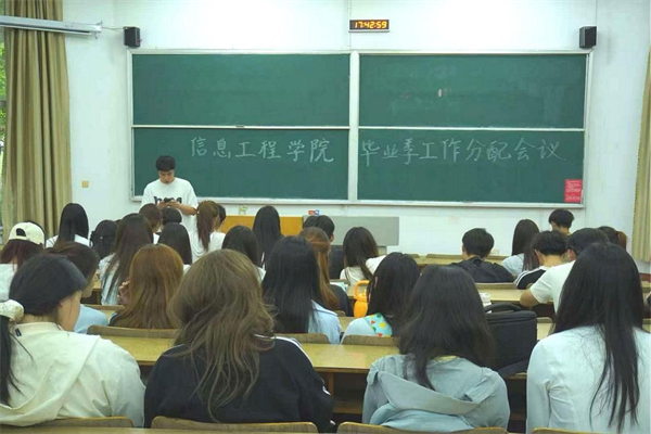 5月30日,信息工程学院院级学生干部在6号楼116教室召开了2025年毕业季工作部署会议。本次会议由学生会主席宋雨航及学生发展中心主任吴迪共同主持,全体院级学生干部参会。