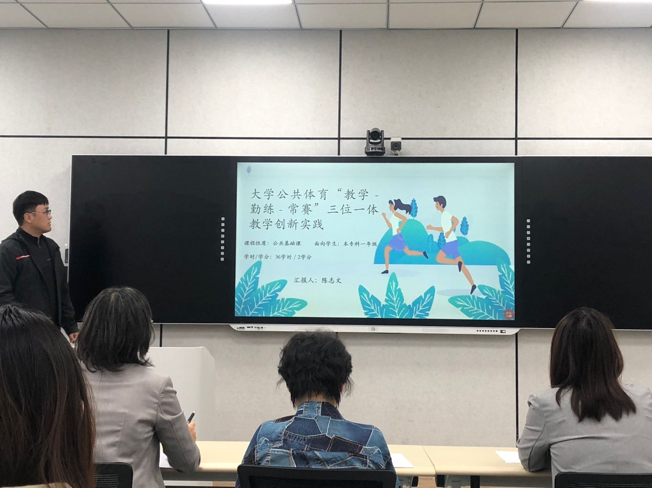 体育教研室团队以“大学公共体育‘教学-勤练-常赛’三位一体教学创新实践”主题,展示了科学的体能训练方法,将运动生理学、健康管理学知识融入教学,并在课堂上积极实践创新的体育活动,体现了体育教学的现代化与科学化。