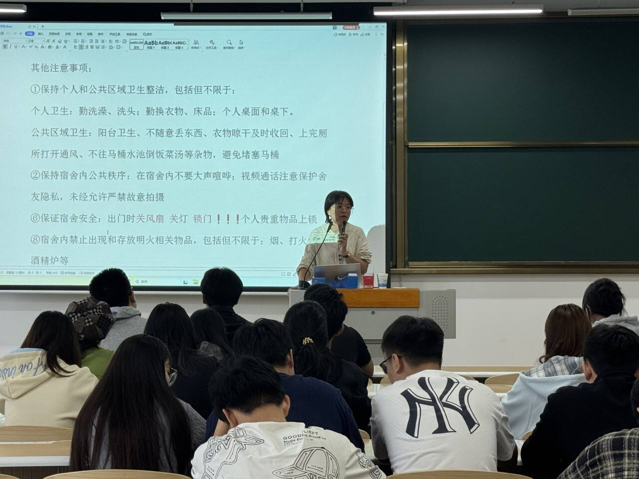 会议伊始,周靖讲述了“学生学习行为规范”主要内容,特别强调了“十准,十不准”原则,并遵循着“骨干先吃透”的行为准则,清晰掌握“学生学习行为规范”的核心要义,更加明确个体在学风建设中的角色与使命,并引领同学们养成更加良好的生活、学习习惯,推动规范要求落地见效,入脑入心。随后,又拓展了“大学生社区公约”,要求同学们遵守宿舍纪律,共筑一个温馨的生活环境。最后,张蕾对本次学习进行了总结和补充,让行为规范深入每位同学的内心。